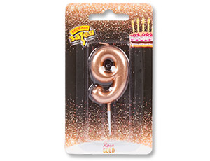 Декоративное украшение стола. Свеча-мини на пике в форме цифры "9". Цвет - розовое золото. Отличное решение для декорирования торта, десерта ко дню рождения или юбилею. Стеарин, оригинальный дизайн. Высота свечи-цифры 4,5см.